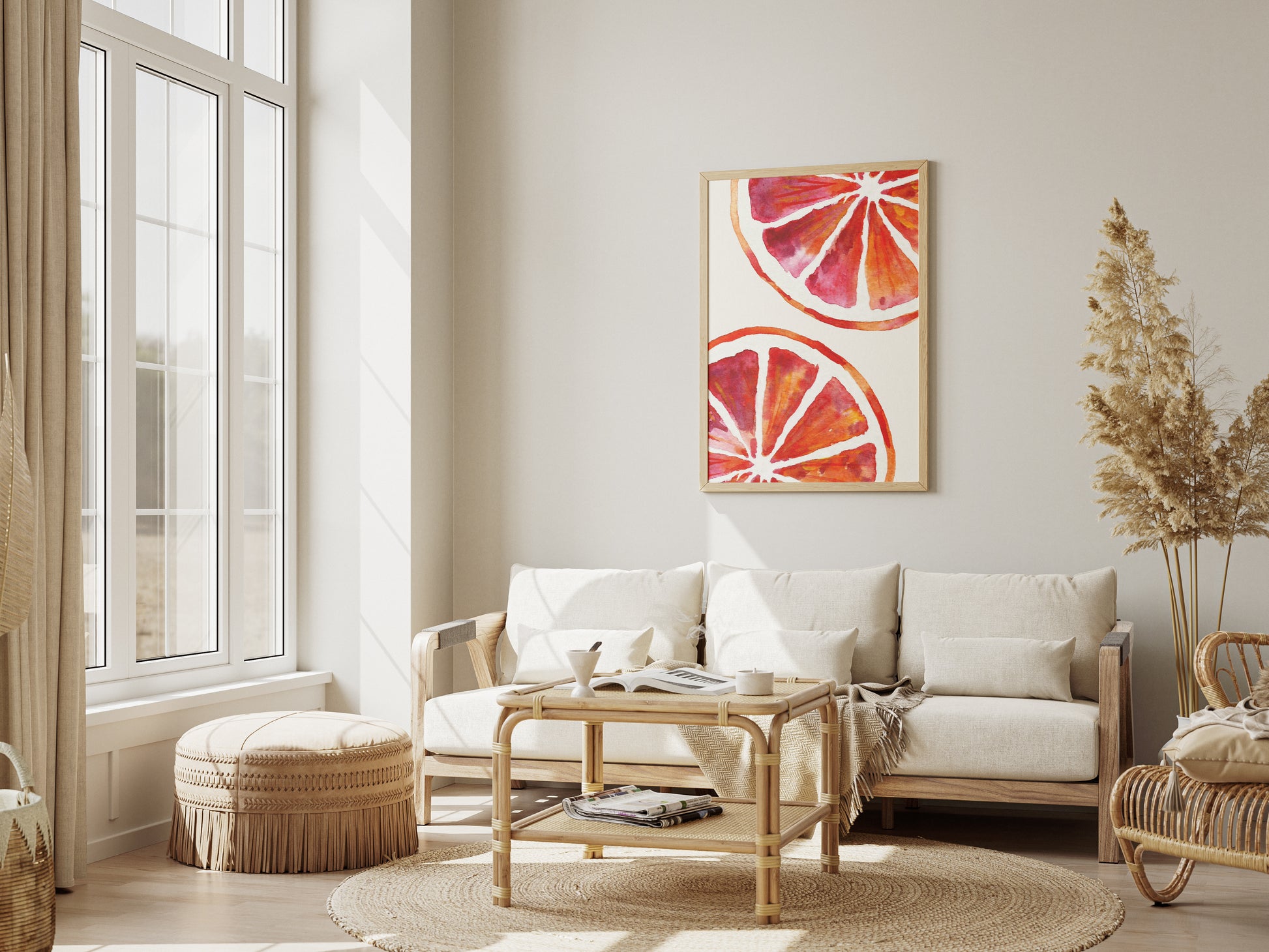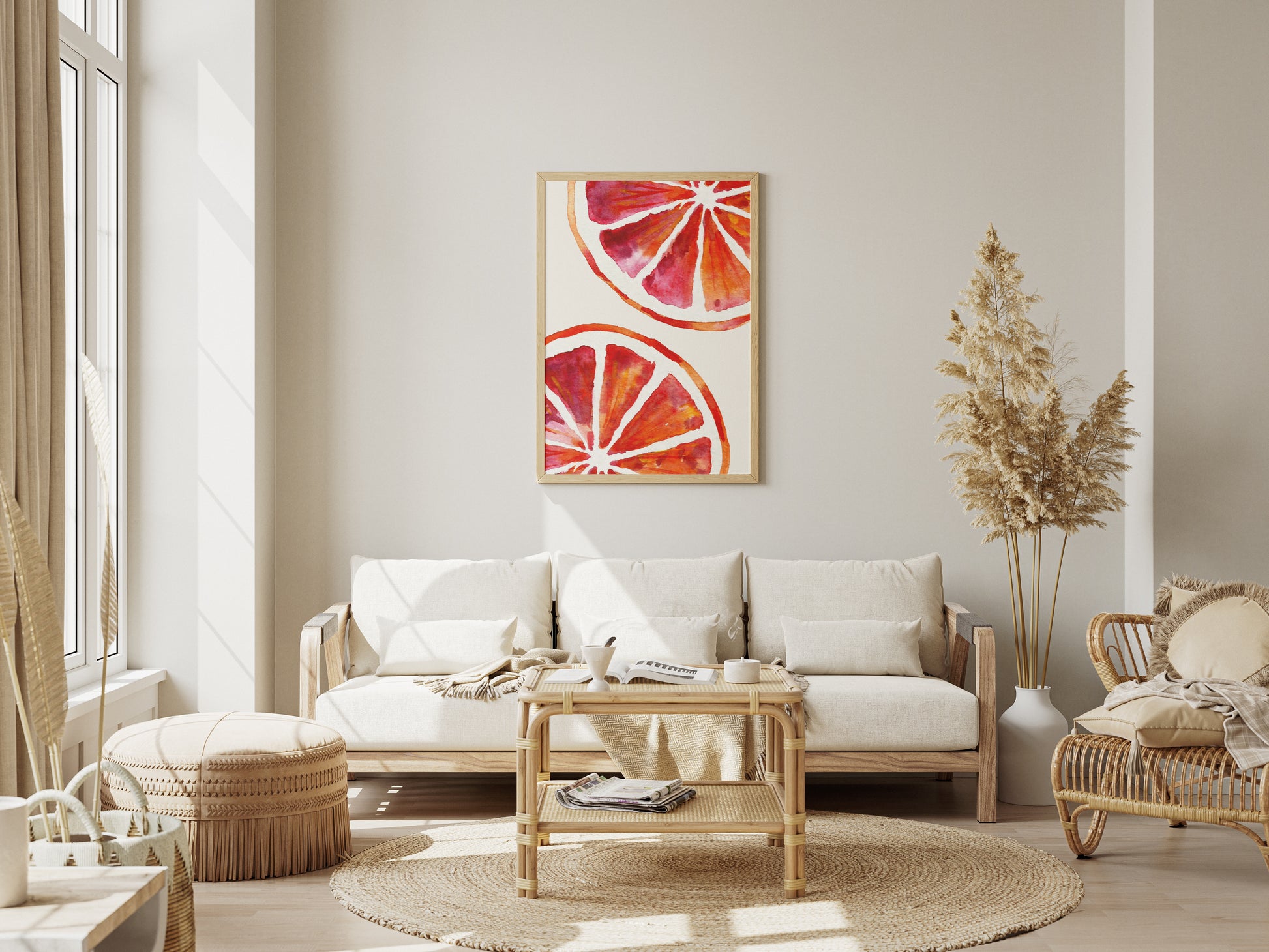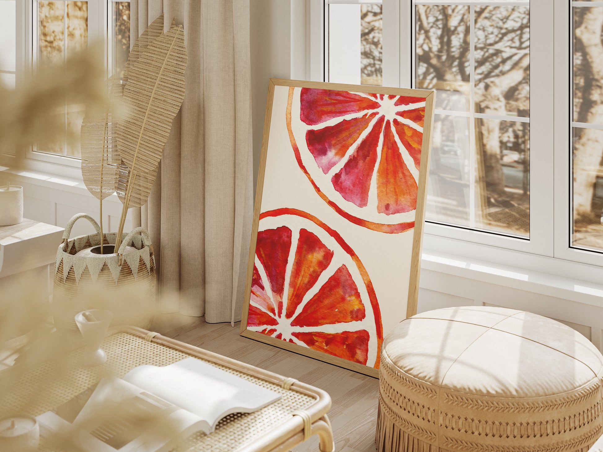 Blood Orange Halves - Digital Poster (A3) printable wall art — an A3 digital poster (297×420 mm, 300 DPI) for instant download. Inspired by a3 poster, citrus, digital download, home decor design, this high‑resolution artwork brings a curated gallery look to your space.