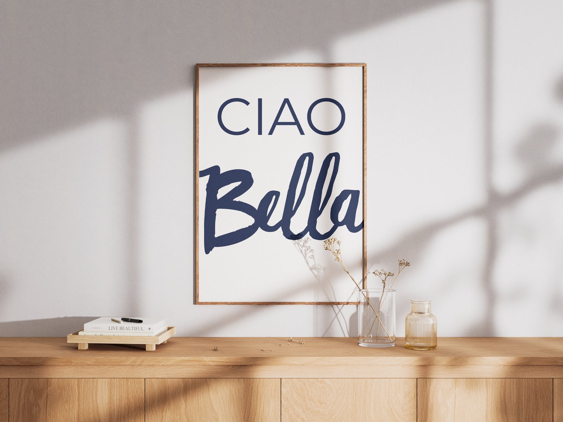 Ciao Bella Navy - Digital Poster (A3) printable wall art — an A3 digital poster (297×420 mm, 300 DPI) for instant download. Inspired by a3 poster, digital download, home decor, italian design, this high‑resolution artwork brings a curated gallery look to your space. Ideal for kitchens, dining rooms, and studios.
