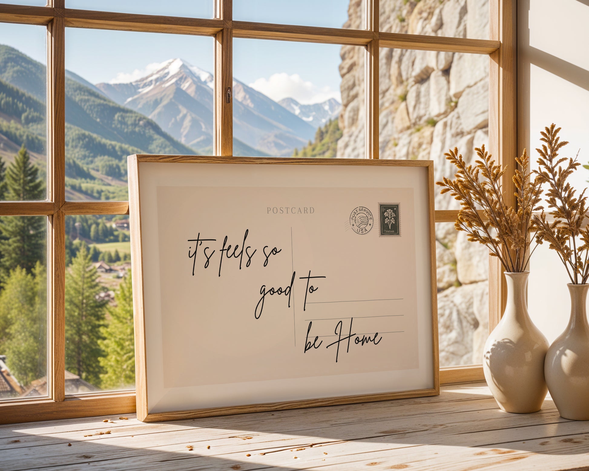 Feels So Good To Be Home - Digital Poster (A3) printable wall art — an A3 digital poster (297×420 mm, 300 DPI) for instant download. Inspired by a3 poster, digital download, entryway decor, home decor design, this high‑resolution artwork brings a curated gallery look to your space.