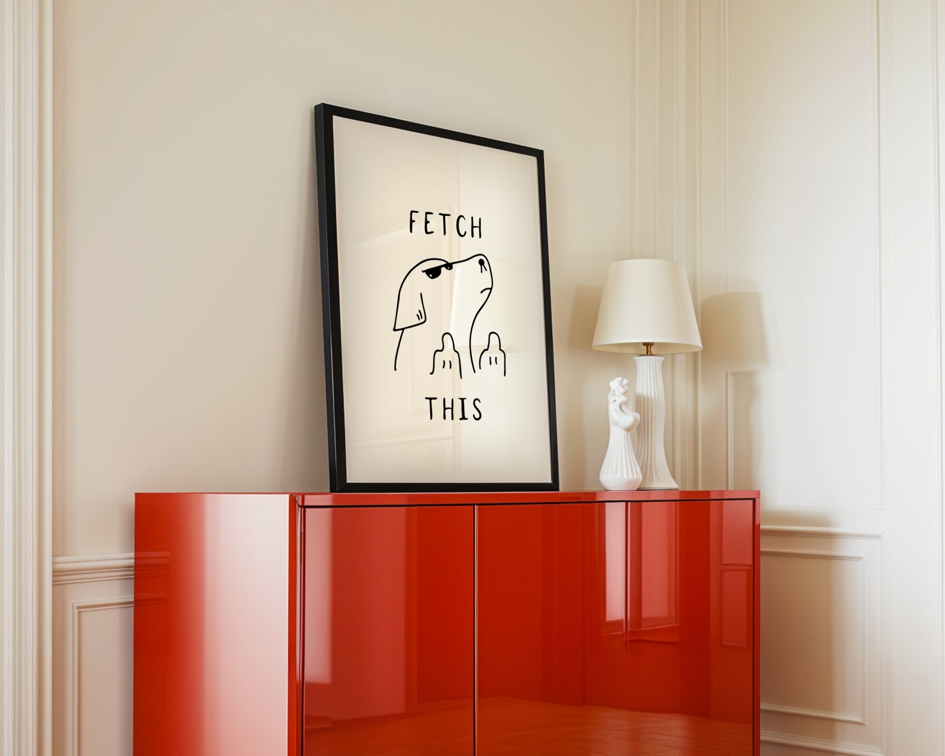 Fetch This Dog - Digital Poster (A3) printable wall art — an A3 digital poster (297×420 mm, 300 DPI) for instant download. Inspired by a3 poster, digital download, dog, edgy design, this high‑resolution artwork brings a curated gallery look to your space. Made to refresh gallery walls, entryways, and reading nooks.