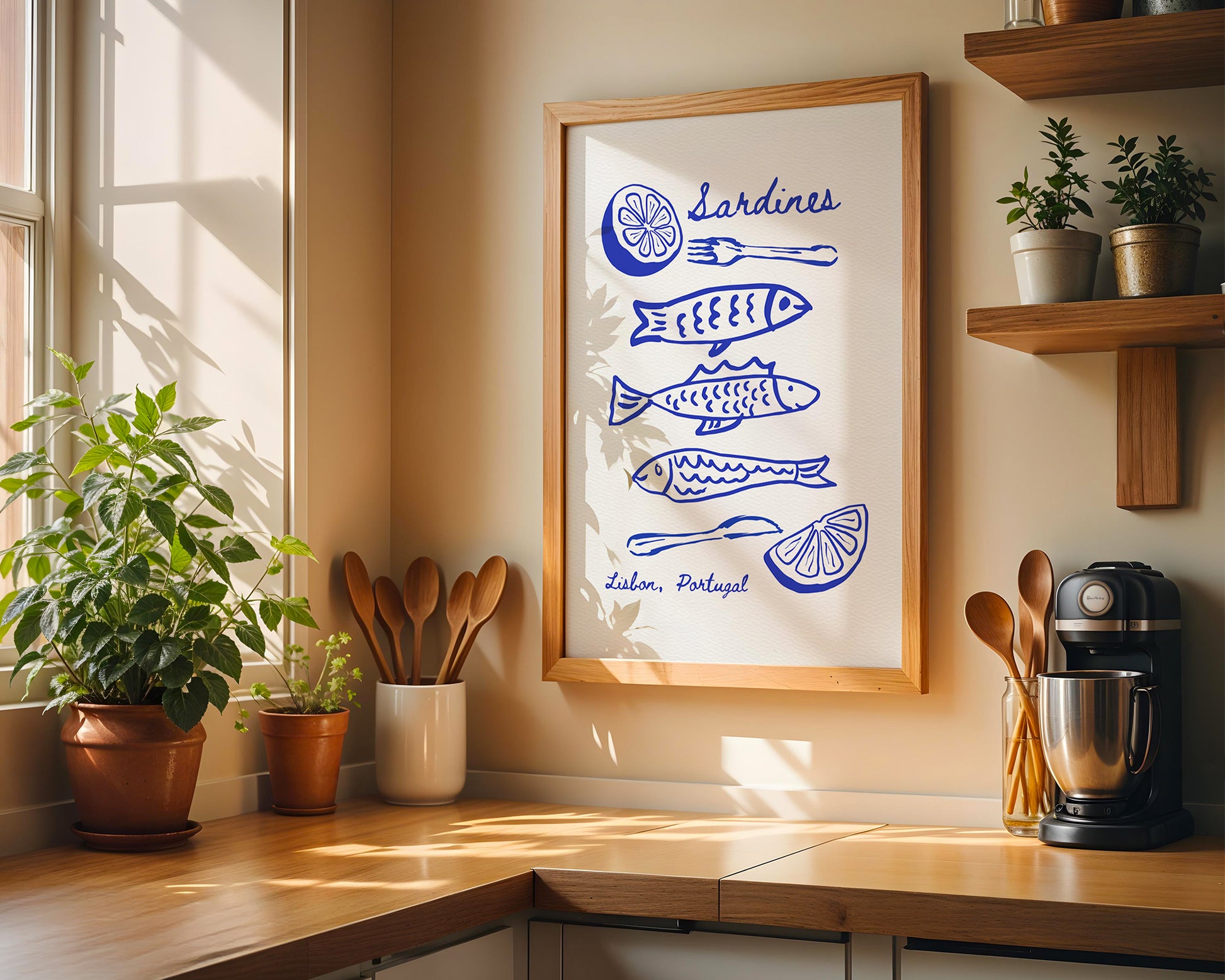 Sardines Lisbon Portugal Sketch - Digital Poster (A3) printable wall art — an A3 digital poster (297×420 mm, 300 DPI) for instant download. Inspired by a3 poster, blue illustration, digital download, home decor design, this high‑resolution artwork brings a curated gallery look to your space.