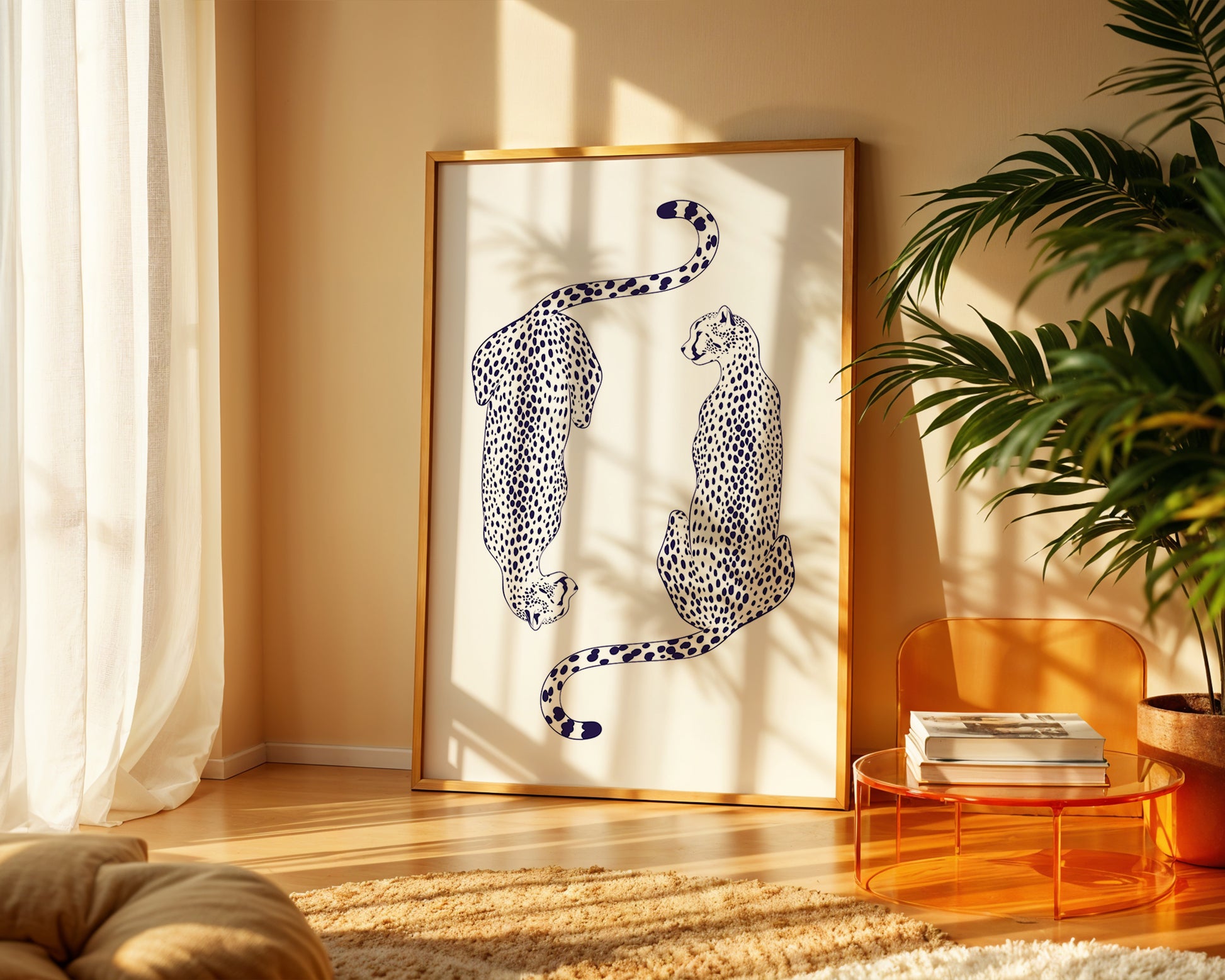 Twin Cheetahs - Digital Poster (A3) printable wall art — an A3 digital poster (297×420 mm, 300 DPI) for instant download. Inspired by a3 poster, animals, cheetah, digital download design, this high‑resolution artwork brings a curated gallery look to your space. Ideal for apartments, dorms, and rental-friendly spaces.